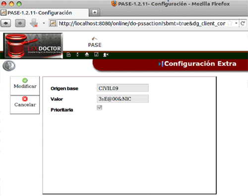 En la opción del menú “Configuración” se definen los datos de los juzgados que van a participar del pase.